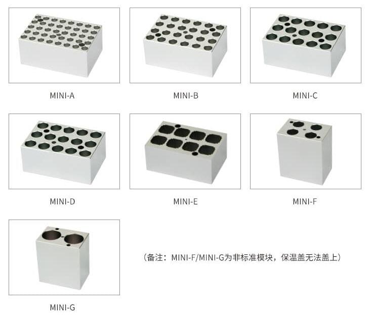 迷你金屬浴價格贈送1個標(biāo)準(zhǔn)模塊(型號MINI-C 15 x 1.5m l 離心管 ),其他型號模塊需單獨(dú)選購。