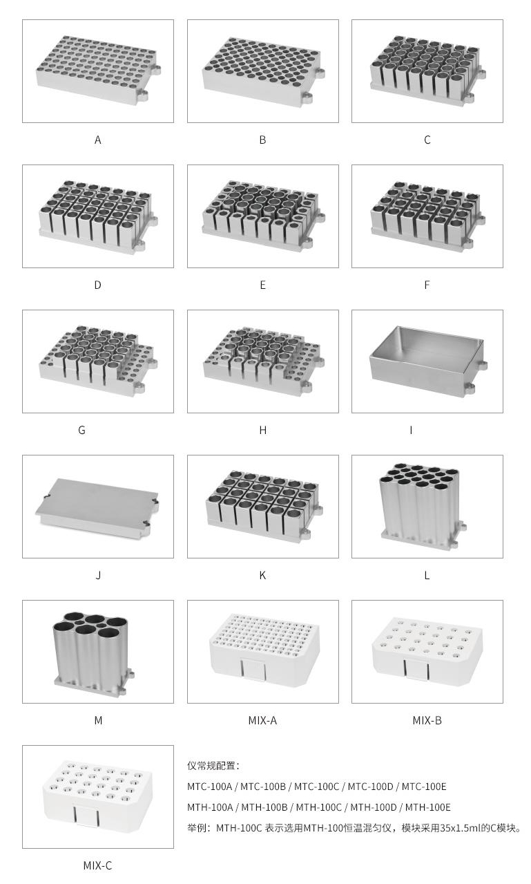 舉例:MTH-100C 表示選用MTH-100恒溫混勻儀,模塊采用35x1.5ml的C模塊。