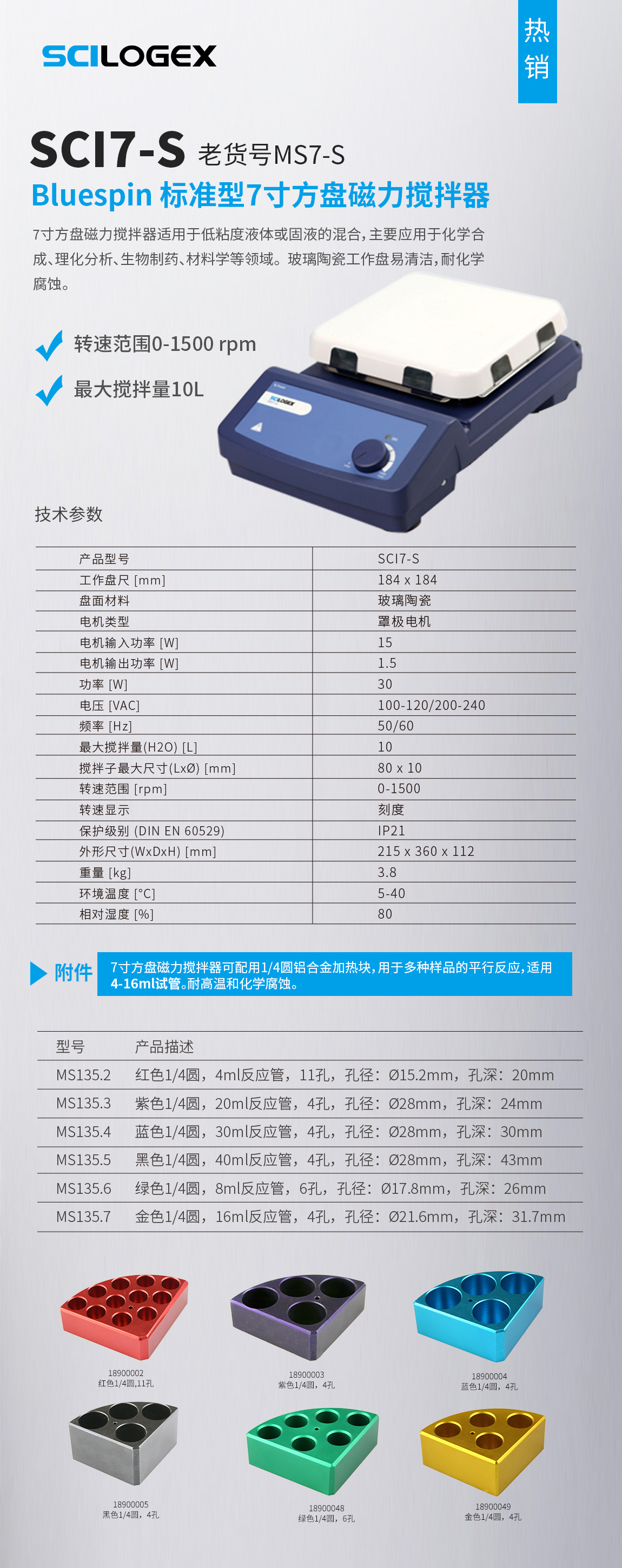 新SCI7-S老MS7-S Bluespin 標準型7寸方盤磁力攪拌器