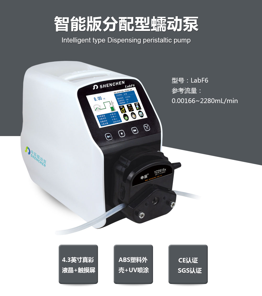 自動(dòng)分液器/連續(xù)分液器/智能分配型蠕動(dòng)泵,智能分配型工業(yè)蠕動(dòng)泵,采用ABS工程塑料外殼,加噴UV涂層,實(shí)現(xiàn)防腐蝕,防靜電保護(hù)。流線型機(jī)身設(shè)計(jì),工業(yè)級(jí)4.3英寸真彩色顯示,觸摸屏操作,轉(zhuǎn)速范圍1-600轉(zhuǎn)/分鐘,流量范圍0.00166-2280ml/min,可預(yù)設(shè)分配流量,分配時(shí)間,間隔時(shí)間,分配次數(shù),回吸角度,動(dòng)畫顯示工作狀態(tài),分配數(shù)據(jù),設(shè)定參數(shù),系統(tǒng)配置同屏顯示??蛇B接腳踏開關(guān)或開關(guān)信號(hào),實(shí)現(xiàn)遠(yuǎn)程控制,適用于大流量、高效率、高精度灌裝。
