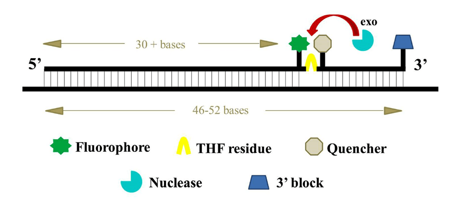 2. 在距 5’端約 30nt 序列位置上標記一個 dSpacer(四氫呋喃,THF),作為 nfo 的識別位點;