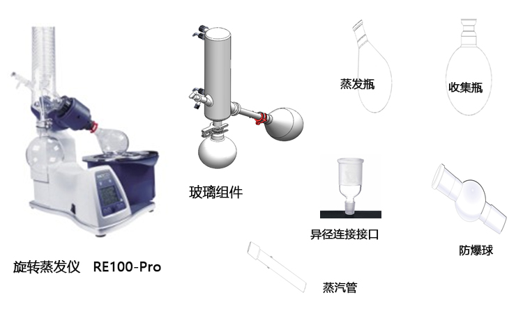 | RE100-Pro | 旋轉(zhuǎn)蒸發(fā)儀,包括豎直冷凝玻璃組件(1000ml) | 17600.00 | ||