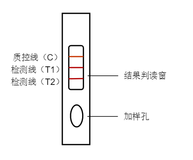 檢測(cè)卡出現(xiàn)質(zhì)控線(C)和檢測(cè)線(T2),都是紅色條帶,則靶標(biāo)2為陽(yáng)性;