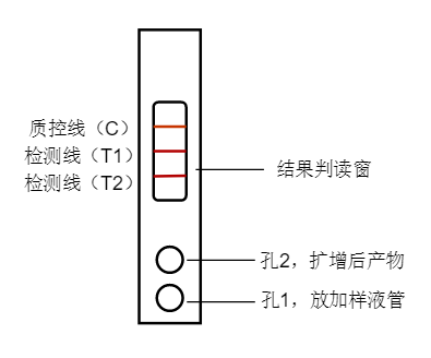 檢測(cè)卡出現(xiàn)質(zhì)控線(C)和檢測(cè)線(T1),都是紅色條帶,則靶標(biāo)1為陽(yáng)性;